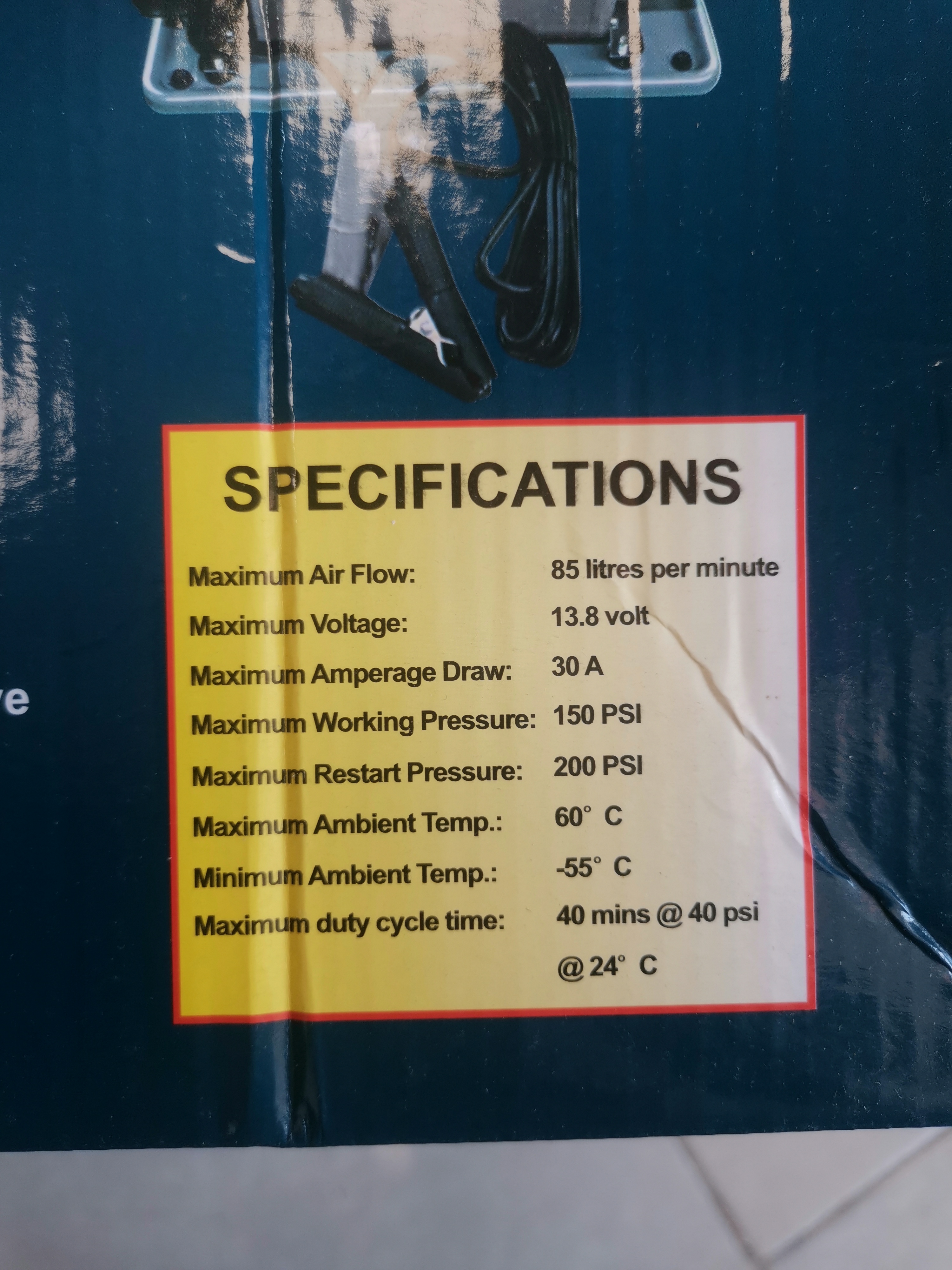 قویترین کمپرسور هوای قابل حمل در کلاس خود با خروجی بالا در 30 psi.دارای فیلتر هوای قابل تمیز کردن برای جلوگیری از ورود آلودگیها.مجهز به سوئیچ قطع کن حرارتی خودکار برای محافظت موتور در برابر گرمای بیش از حد.شامل گیج فشار یکپارچه 150 psi با خوانایی آسان.دارای شلنگ کویل 26 فوتی با اتصال سریع و مقاوم در برابر حرارت بالا، همراه با اتصال دهنده شیر هوای برنجی "Easy Twist".تغذیه شده توسط موتور 1/3 اسب بخار، 12 ولت، بدون روغن و دارای فیوز 45 آمپر برای حفاظت بیشتر.